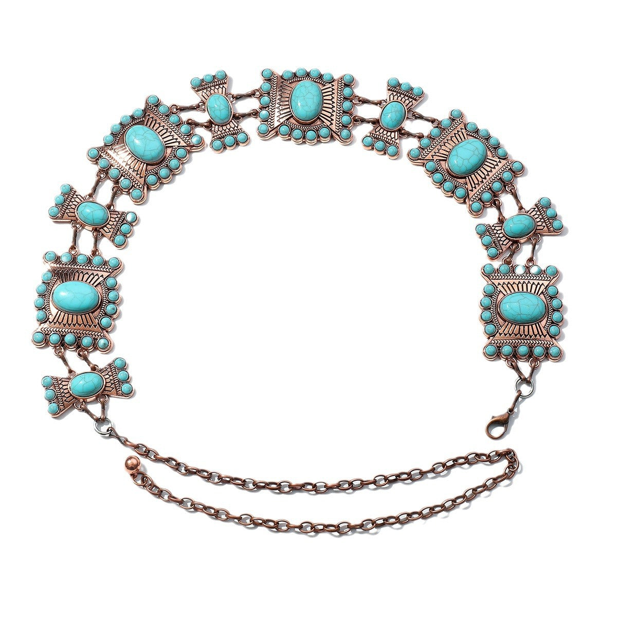 Fashionable Zinc Alloy Simple All-match Carved Turquoise Waist Chain