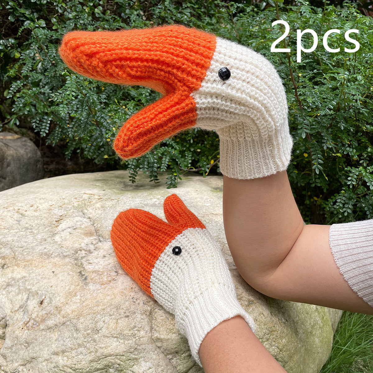 Cold Protection In Three-dimensional Swan Full Finger Gloves Knitted Wool Mittens