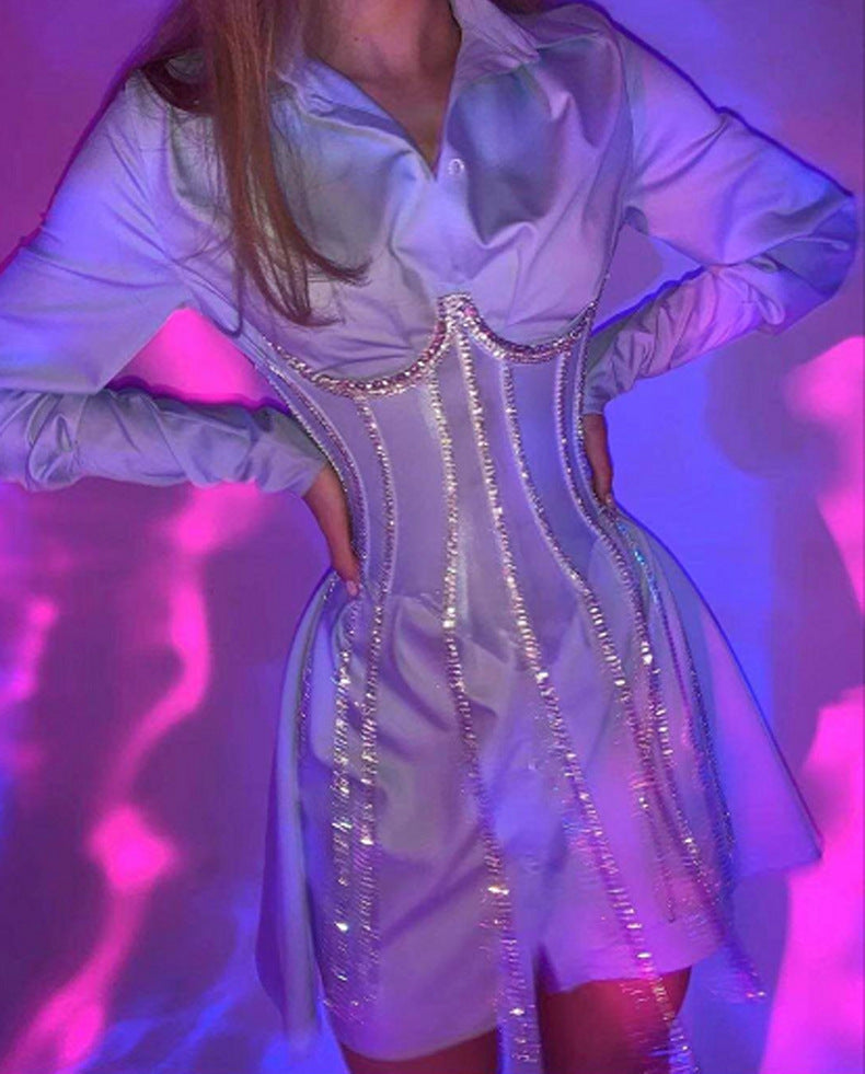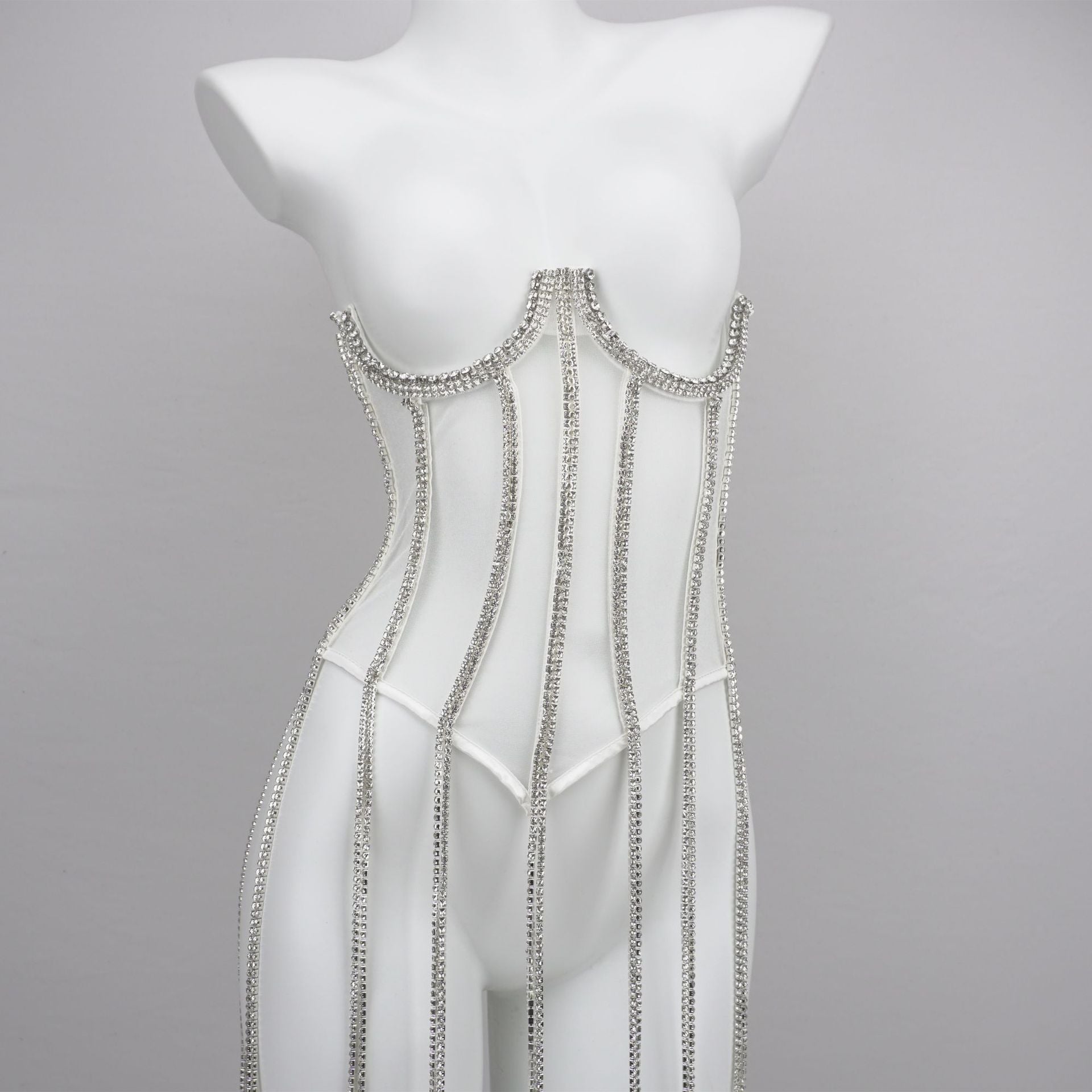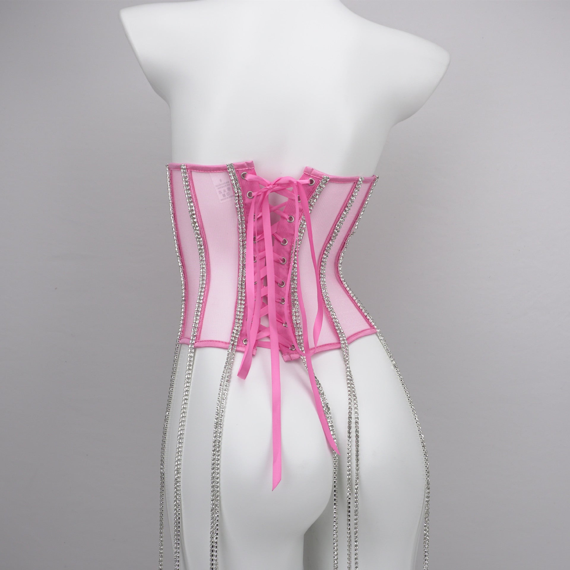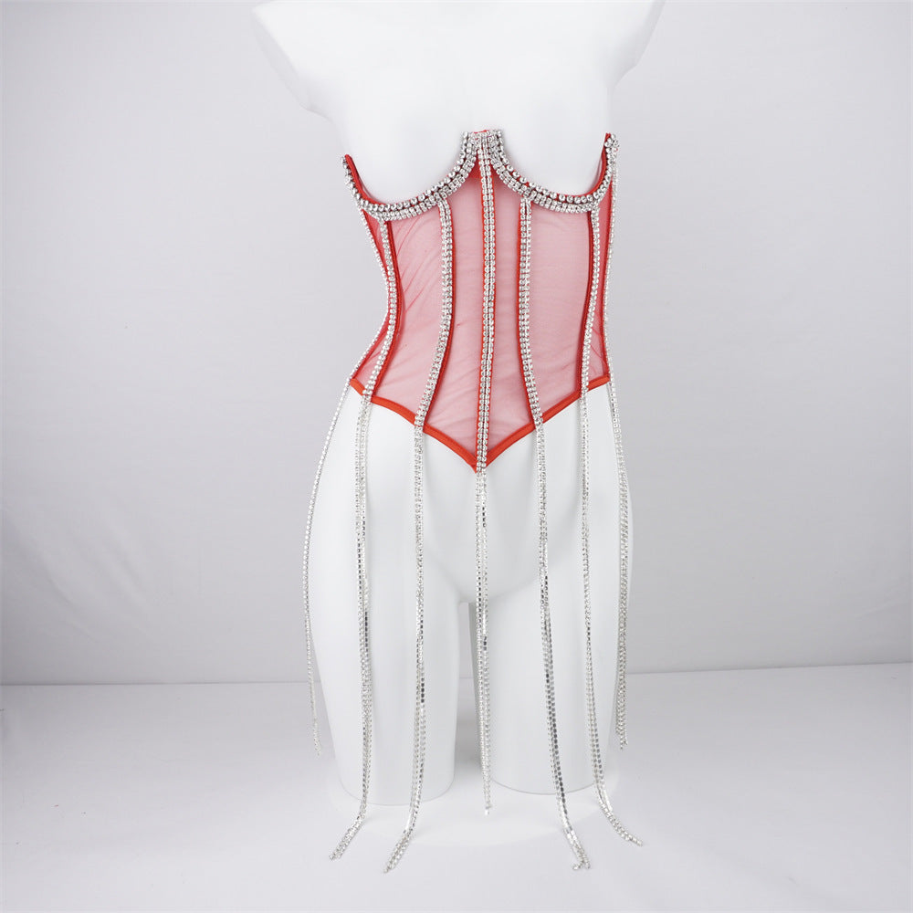 • Bright Rhinestone Vest Transparent Lace Bra Hot Girl Women's Outer Wear