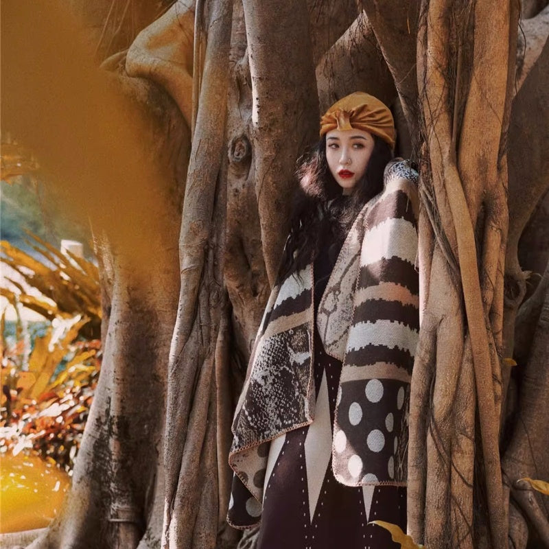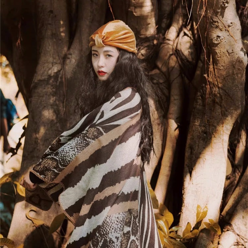• Cashmere-like Polka Dot Warm Cloak Zebra Pattern Inverness