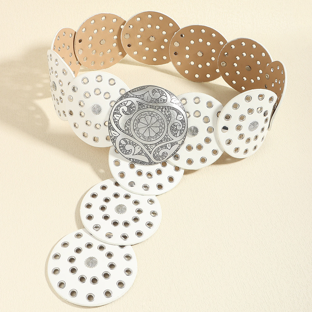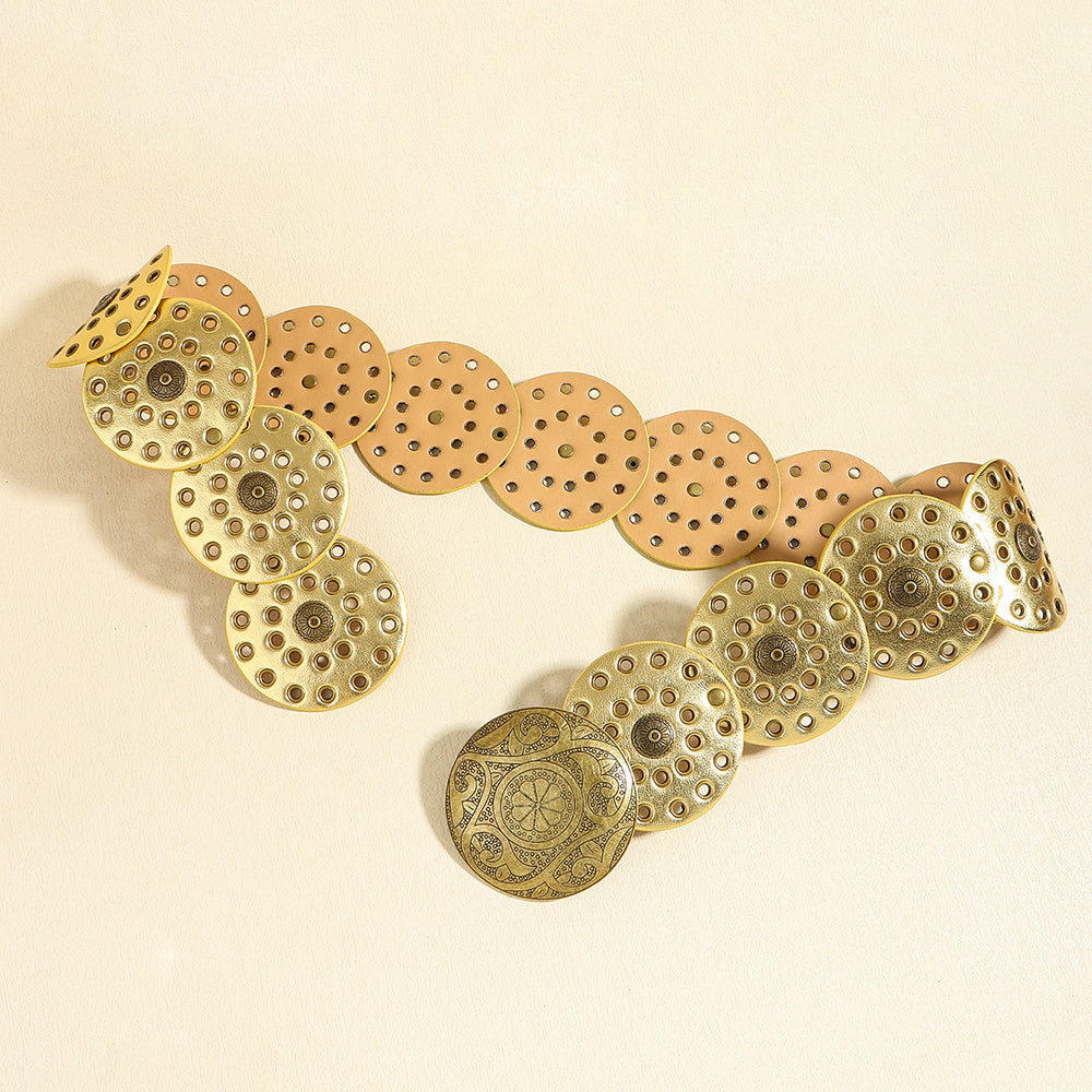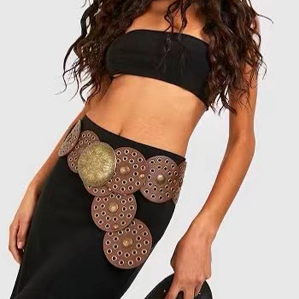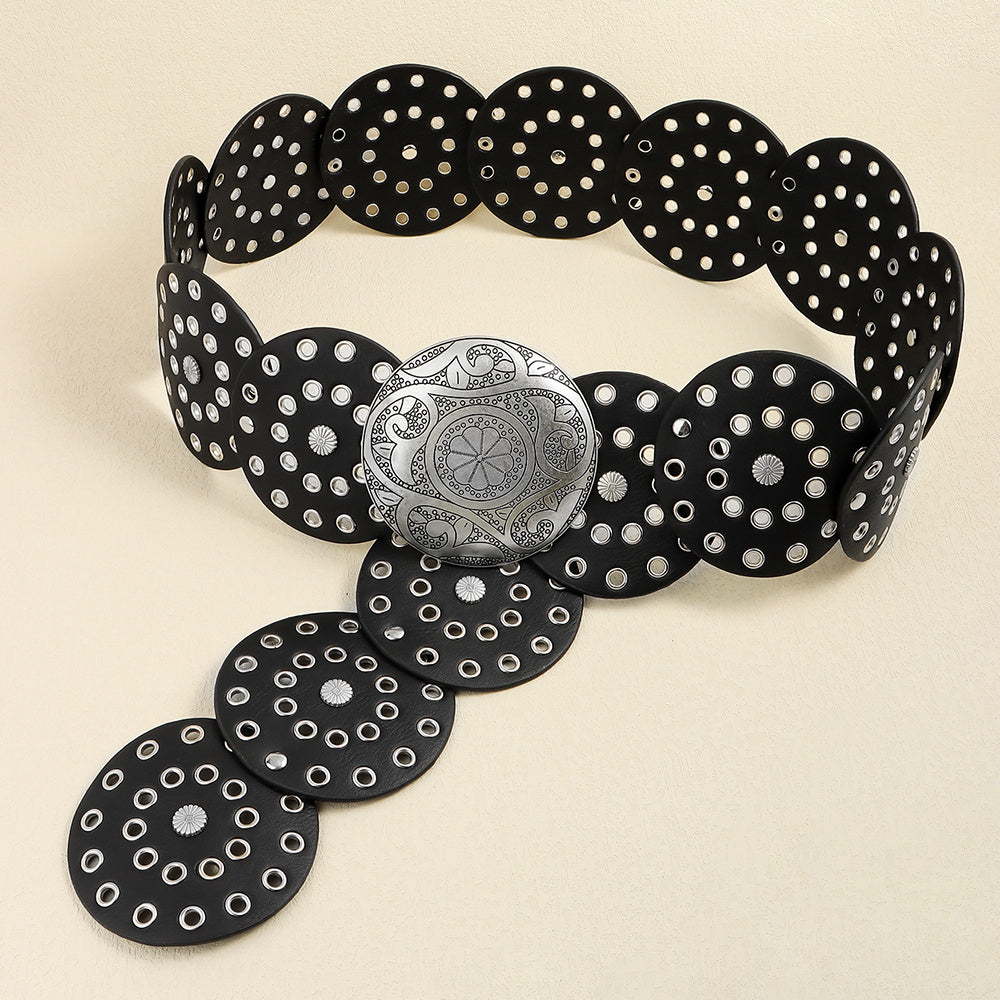 • Fashion Punk Exaggerated Round Cutout Personality Belt Ladies Metal Retro Wide Belt