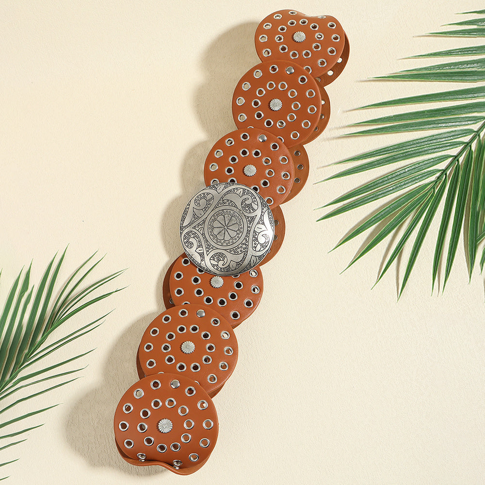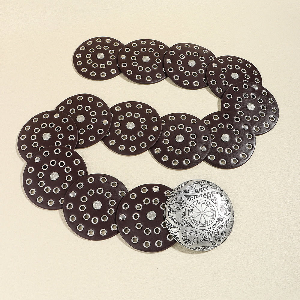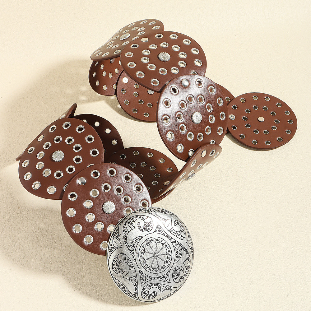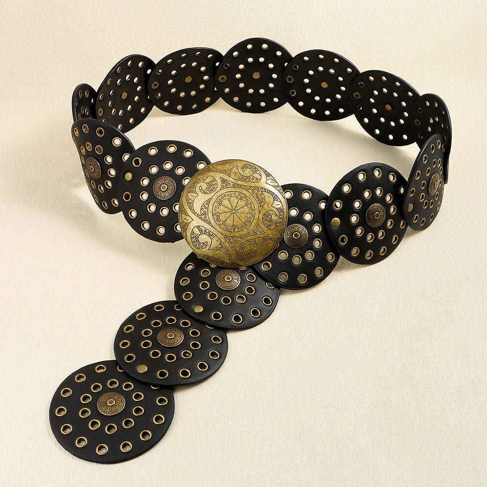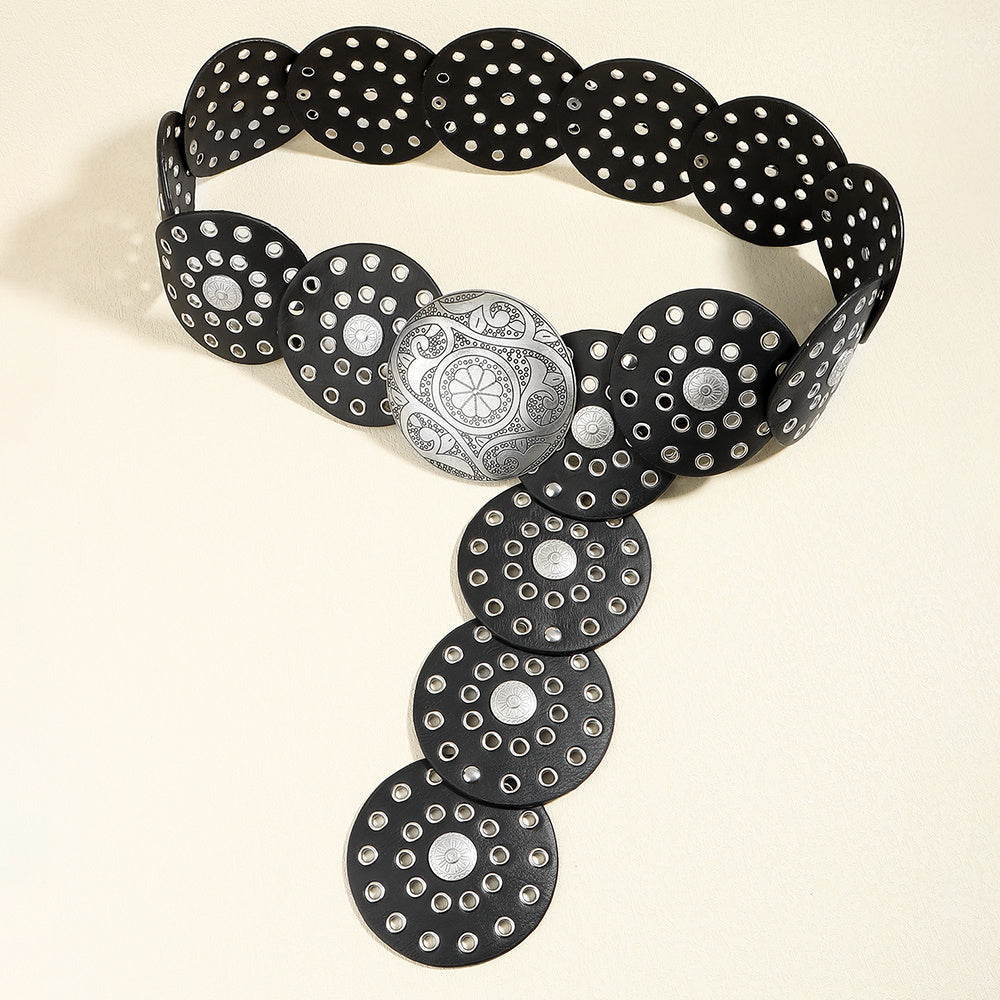 • Fashion Punk Exaggerated Round Cutout Personality Belt Ladies Metal Retro Wide Belt