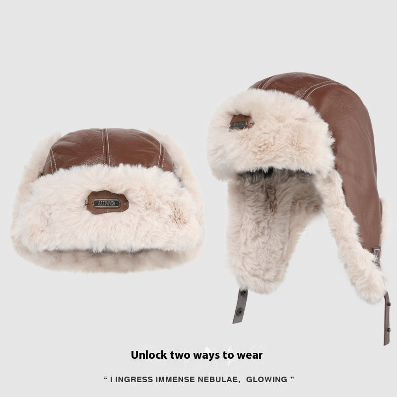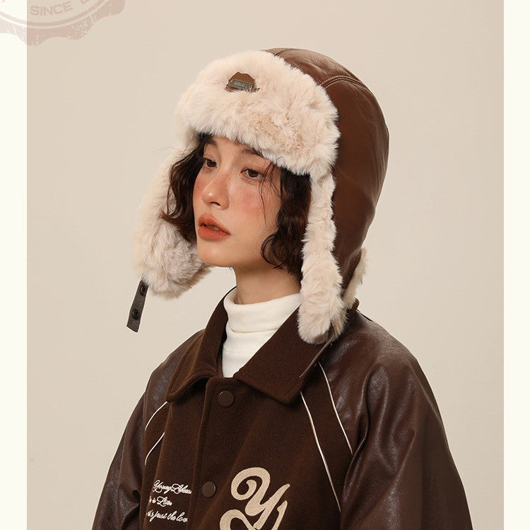• Autumn And Winter Men's And Women's Warm Vintage Leather Pilot Hat