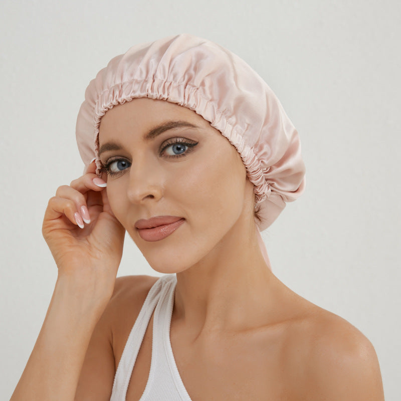 Double Layer Silk Nightcap Fabric Soft Protection Hair Head Circumference Adjustable