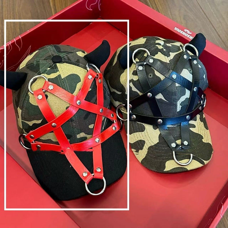 Color classification: red five-pointed star devil camouflage hat, black five-pointed star devil camouflage hat