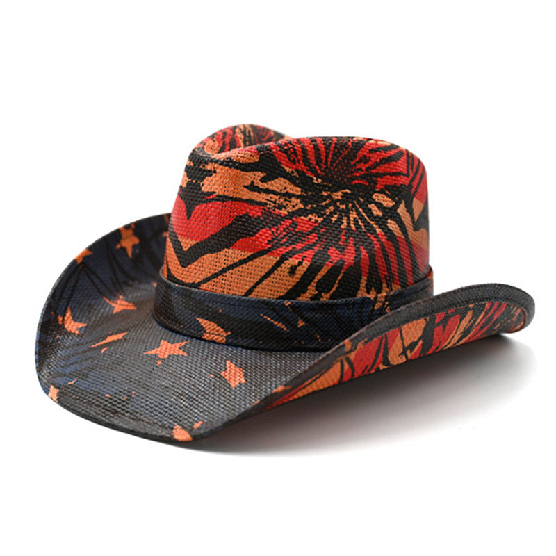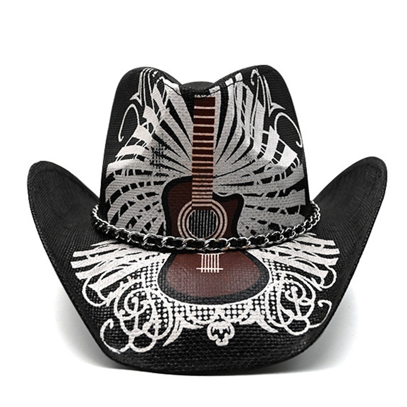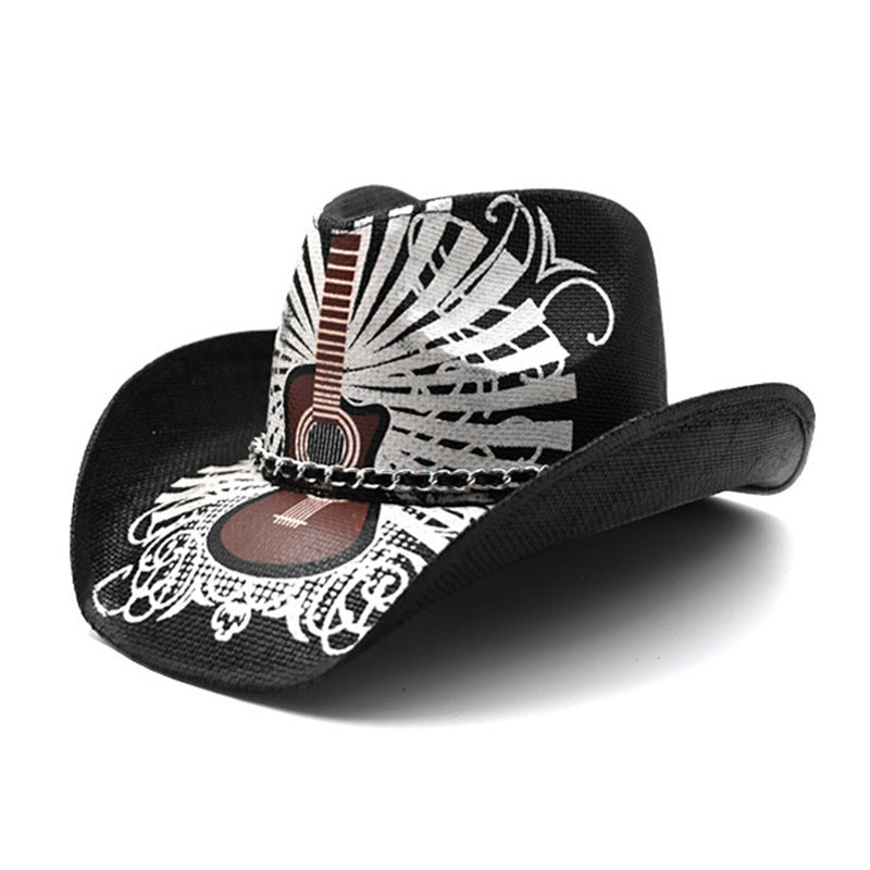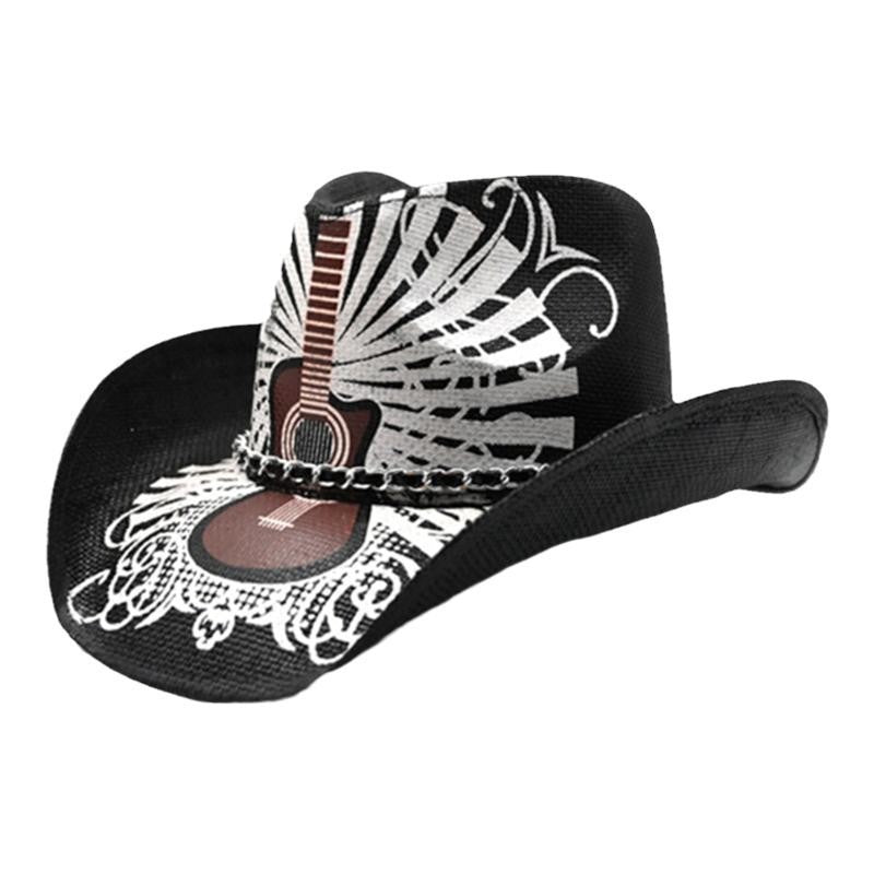 Retro Punk Guitar Skull Beauty Straw Cowboy Hat Sun Protection Sunshade