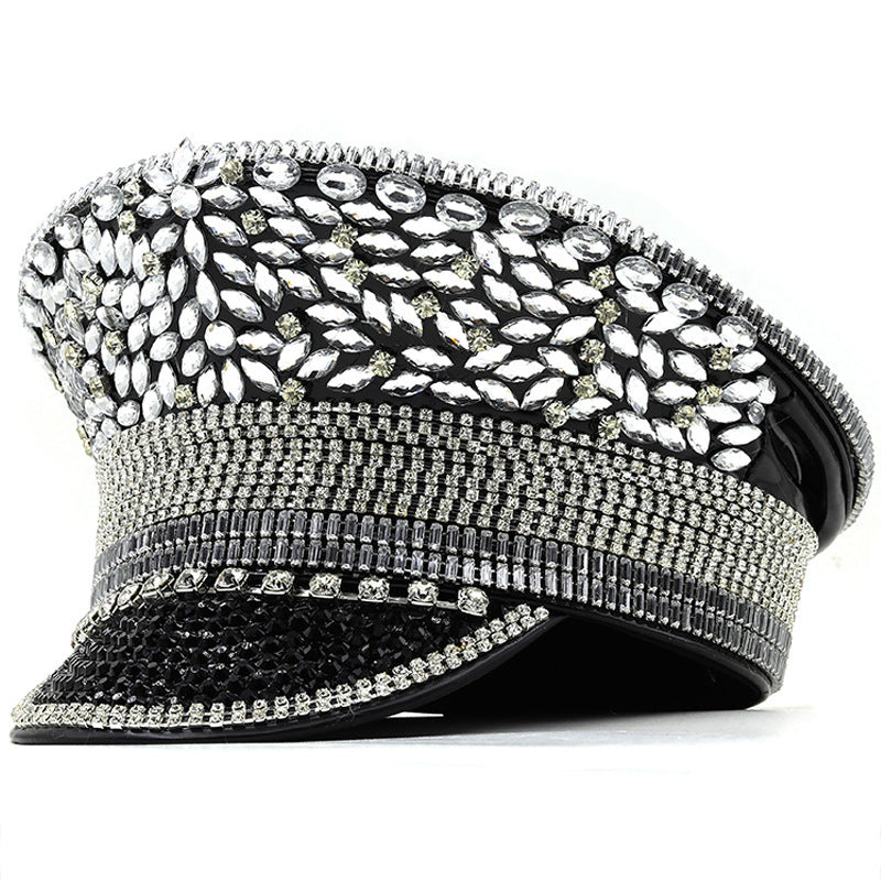 • Women's Diamond Wedding Hat Silver Sequined Diamonds Photography Hat Peaked Cap Flat-top Hat Performance Cap