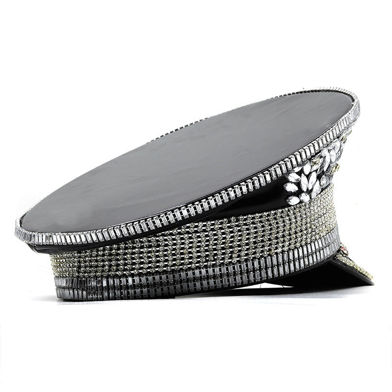 Women's Diamond Wedding Hat Silver Sequined Diamonds Photography Hat Peaked Cap Flat-top Hat Performance Cap