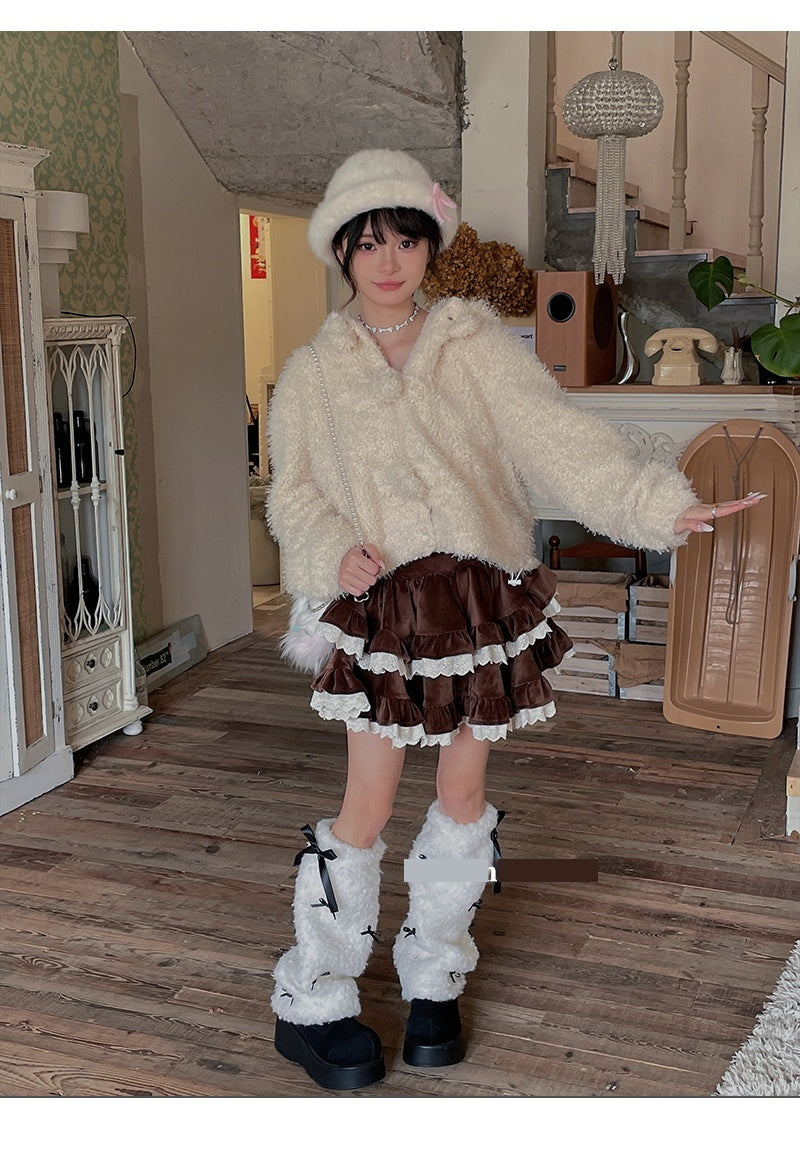 • Thickened Lamb Wool Bow Mid-calf Foot Sock